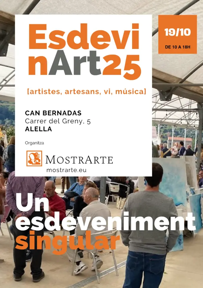 Venir a disfrutar de una copa de vino de origen Alella en un espacio único y abierto, rodeado de naturaleza, con música, donde contemplaréis las obras de artistas y artesanos del Maresme, el domingo 19 de octubre.